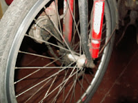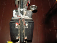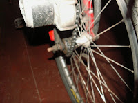 Silnik został przymocowany do sztywnego widelca, który został przykręcony do widelca amortyzowanego.